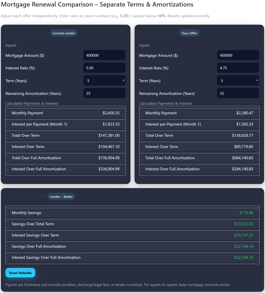 Online renewal calculators are a great tool for understanding your options. They let you play with different rates and terms to see your potential savings. This helps you make smarter decisions and gives you a stronger position to negotiate better with lenders.