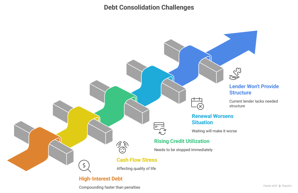 Switching lenders mid-term to consolidate debt isn’t about chasing a rate. It’s about accessing a refinancing strategy your current lender may not be willing—or able—to offer, at a moment when waiting makes things worse.