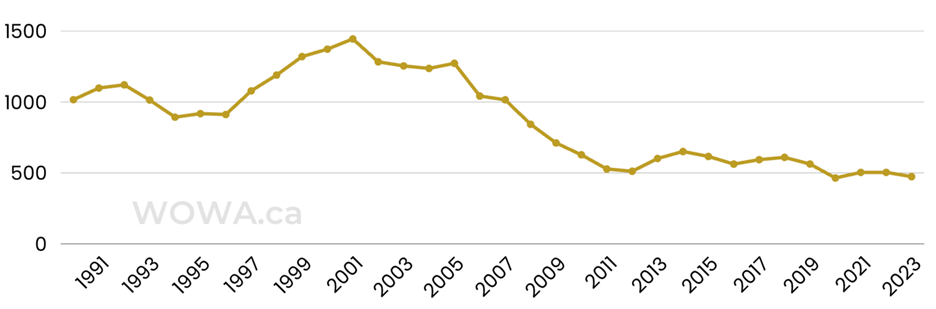 Historically, the median home price in Canada has been 2.4 to 3 times the median income. That means, given that the median Canadian income is around $70,000, the median home in Canada should go for around $210,000. Presently, it’s about $700,000 nationally. However, in the GTA, it is about $1,060,000. For the greater Vancouver area, it’s $1,150,000, but when you are just talking detached homes, the benchmark is about $1,950,000.