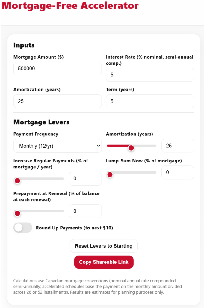 For realtors, the calculator is a value-add. Buyers often feel discouraged by the long amortization they’ve signed up for. Show them how even small tweaks can fast-track their freedom, and you become not just their agent, but part of their financial success team.