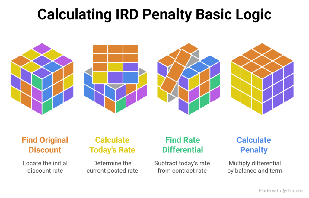 For variable-rate mortgages, the penalty is simple: three months’ interest. But for fixed-rate mortgages at the Big 6, the bank charges you the greater of three months’ interest or the IRD. And the IRD is almost always the bigger number when rates have dropped since you signed.