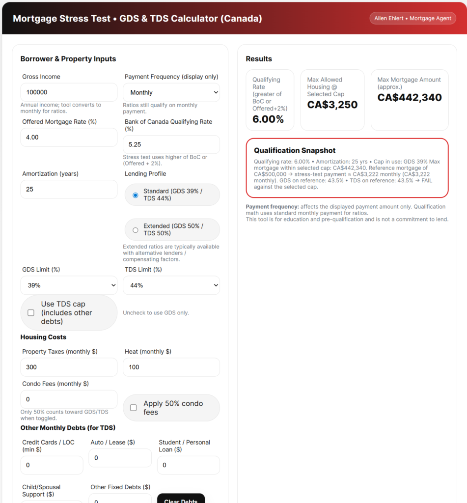 Here’s the truth: the stress test isn’t just about the house you want—it’s about your whole financial picture. My calculator takes into account your mortgage, your debts, and your monthly costs, then shows you both your maximum mortgage amount and what it’ll feel like each month. It’s not about saying “no,” it’s about giving you the tools to plan smarter.