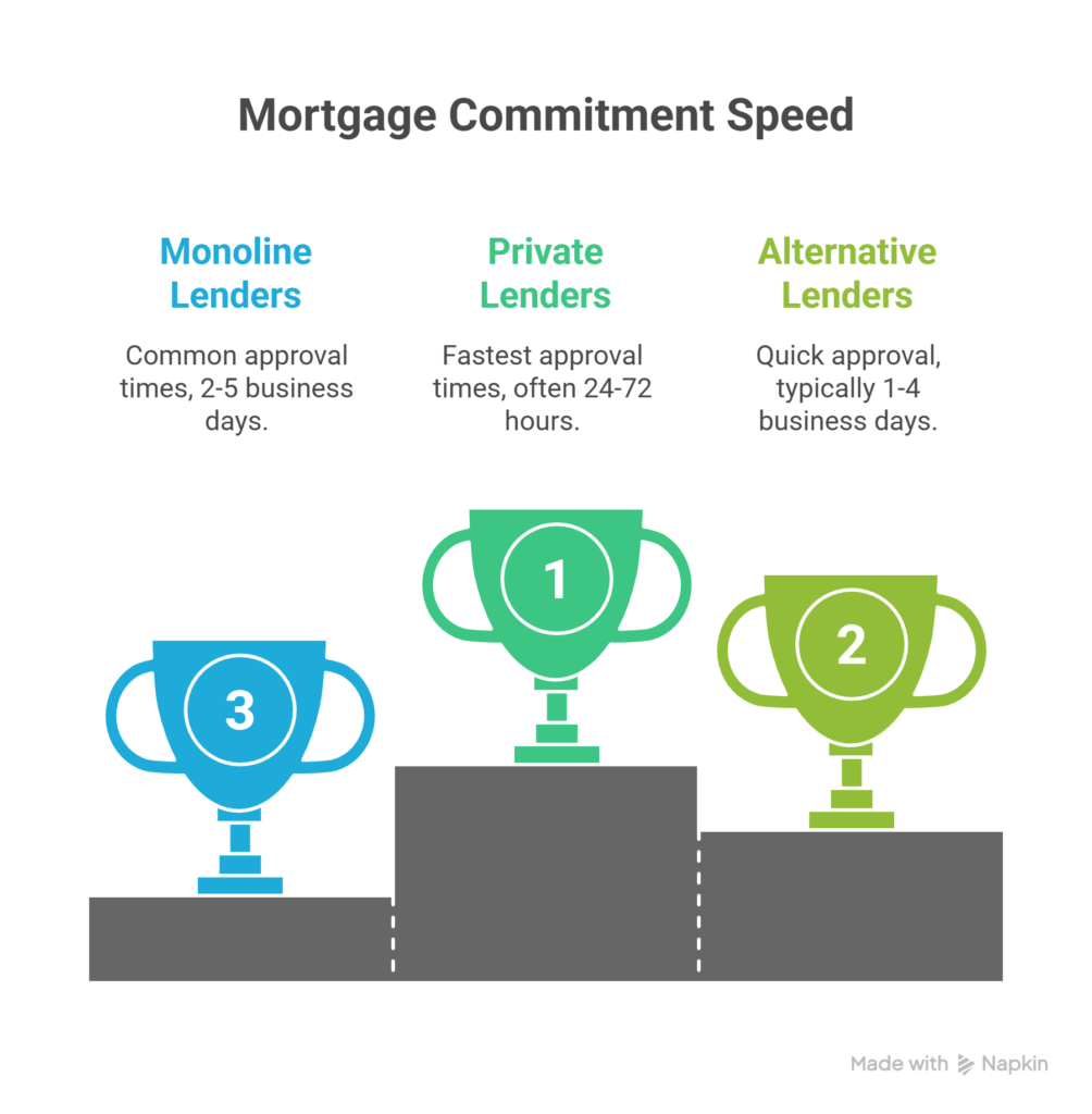 Alternative lenders can often issue commitments in 1 to 4 business days, especially for non-standard income files, because underwriting is manual and direct.